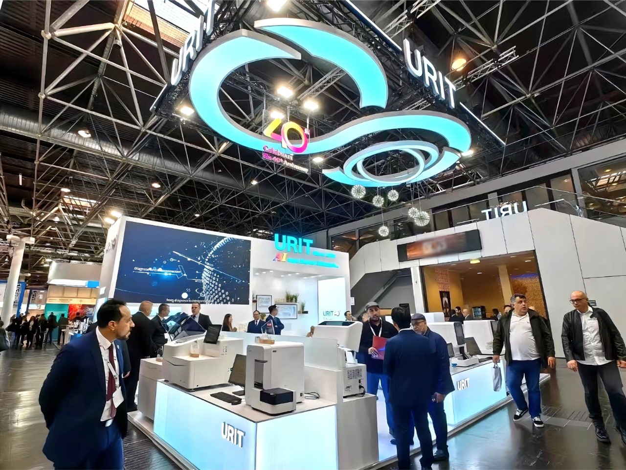 Two "U" shaped elements were cleverly integrated into this circular structure, breaking the monotonous layout of traditional booths and providing a new visual experience. This unique circular design not only showcases the company's innovative spirit but also implies that URIT will have infinite possibilities and vitality in its future development.